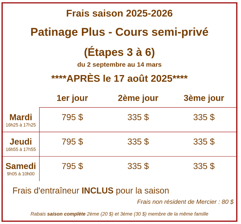 Les inscriptions pour la saison 2025-2026 sont maintenant ouvertes